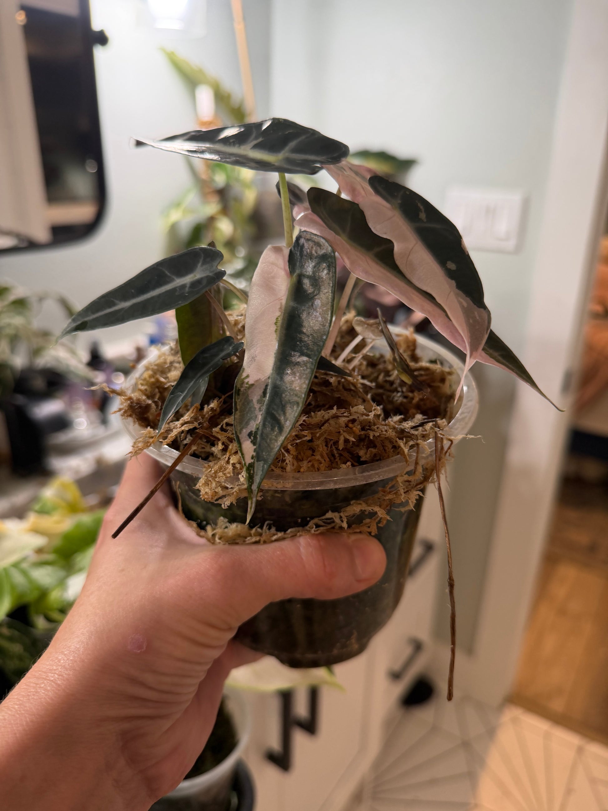 *EXACT PLANT* Variegated Pink Bambino Alocasia Corming size